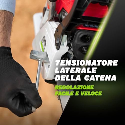 - Accessori inclusi: protezione per lama; kit di attrezzi per manutenzione basica (compresa lama per affilare la catena); kit di protezioni di sicurezza (cuffie, occhiali di sicurezza, guanti)